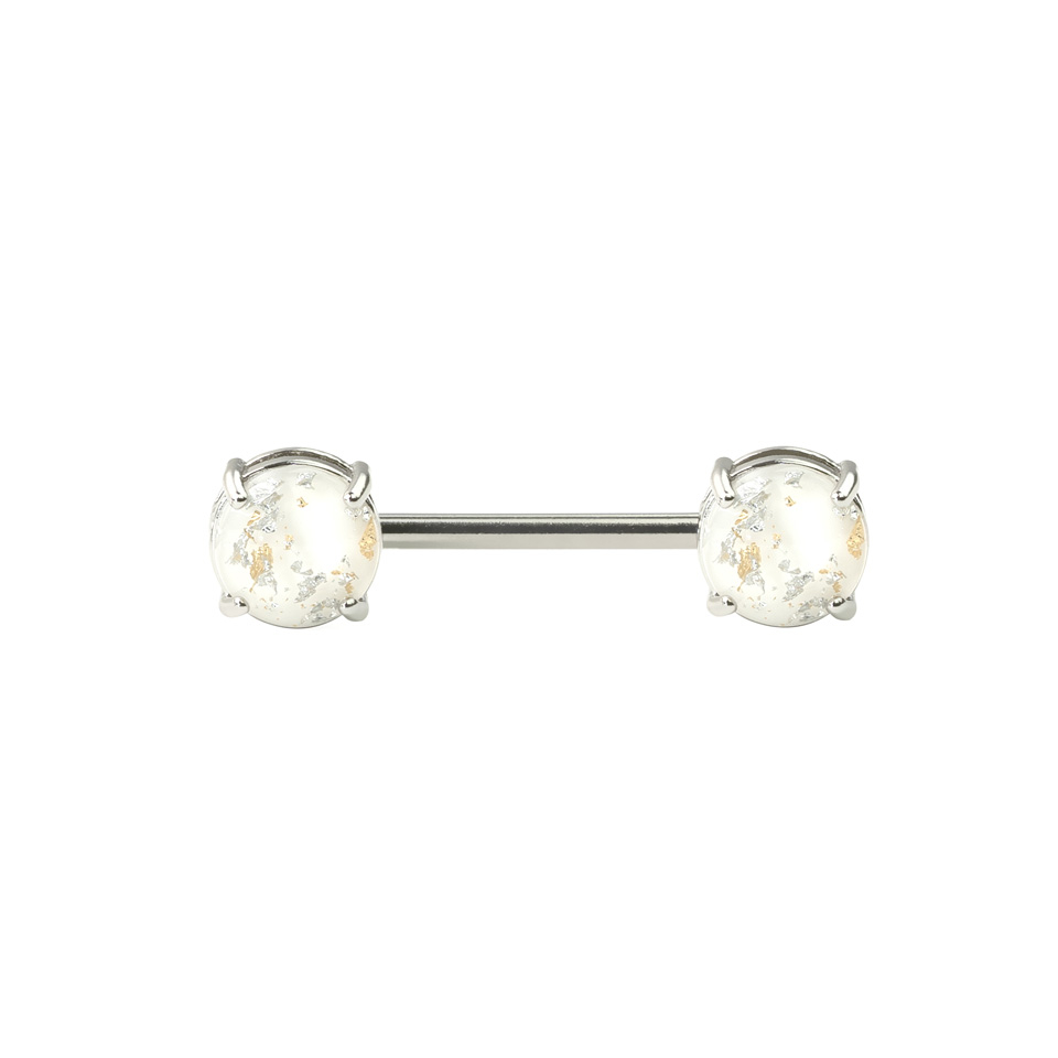 Przedstawiamy świetną sztangę do sutka, zdobioną z obu stron kamieniami zabezpieczonymi czterema haczykami. Jeśli lepiej im się przyjrzysz to zauważysz, że przypominają lampę lava. Kamienie są wykonane z żywicy, dzięki czemu tworzą różne efekty kolorystyczne, ale zawsze będą zbliżone do oryginalnego koloru.