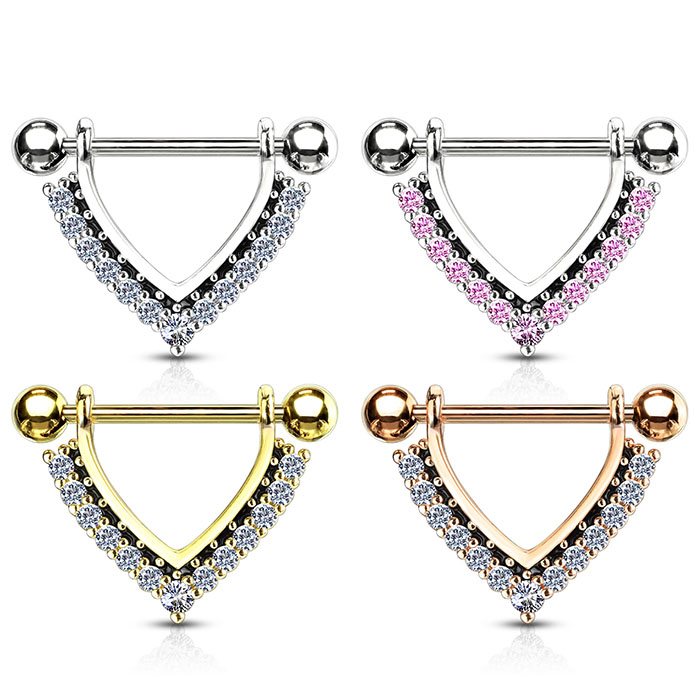Kolczyk do sutka w kształcie litery V zdobiony kamieniami