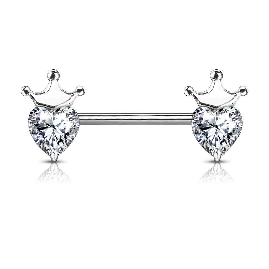 Kolczyk do sutka z kamieniami w kształcie serca i koroną
