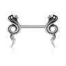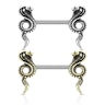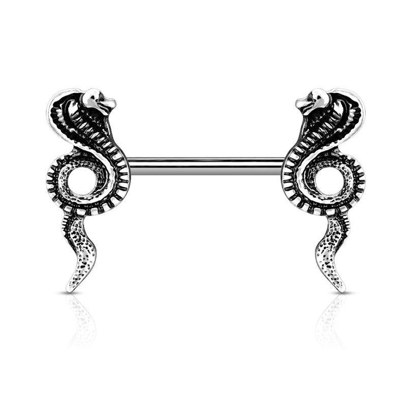 Pręcik jest wykonany ze stali chirurgicznej i ma 14mm długości oraz 1,6mm szerokości, a z każdej strony został ozdobiony zwiniętą kobrą. Są one symetryczne i skierowane ku sobie głowami oraz mierzą 20mm wysokości.