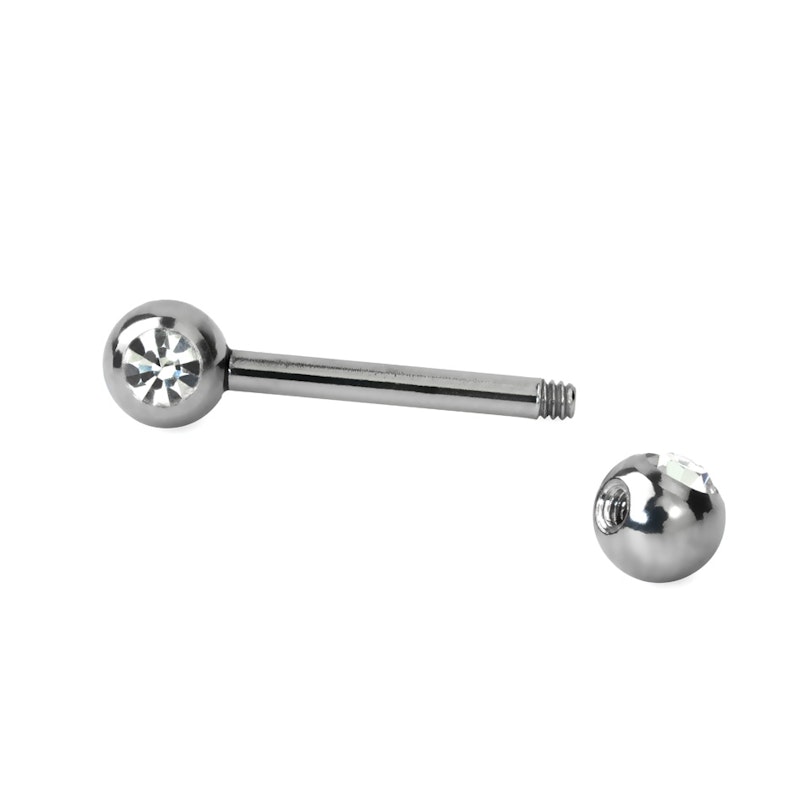 Ten kolczyk do sutka jest prosto zaprojektowany, to po prostu sztanga z dwiema kulkami na końcach. Obie posiadają ozdobny kamień, który tak jak w przypadku wielu innych modeli skierowany jest nie do środka, ale na zewnątrz, co sprawia że jest idealny do przekłuć sutków. Oczywiście, kamienie są także umieszczone w taki sposób by idealnie prezentowały się w całej okazałości na każdym sutku.