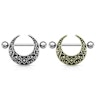 Biżuteria ma prosty wzór, zbudowana jest z pręcika o długości 22 mm, który jest wykonany ze stali chirurgicznej. Przez pręcik przechodzi półksiężyc, który pełni funkcję tarczy. Jest ona wykonana z mosiądzu i ozdobiona delikatnymi oraz filigranowymi wzorami, które dodają biżuterii ostatecznego akcentu.