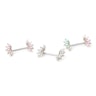 Pręcik wykonany jest ze stali chirurgicznej, natomiast część na której osadzone są kamienie z mosiądzu. Ten ostatni został pokryty warstwą rodu w celu uzyskania ładnego, białego połysku. Kolczyk oferowany jest w trzech różnych kolorach kamieni, które widać na zdjęciu. Pośpiesz się i zamów swój ulubiony już teraz.