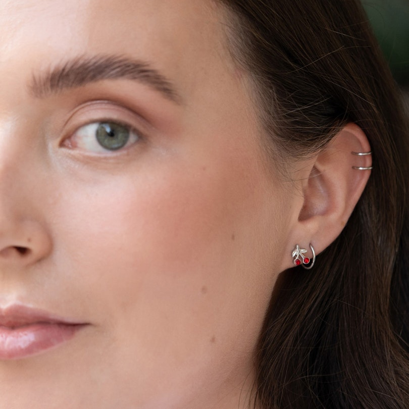 Kolczyk do Tragusa z czerwonymi wisienkami