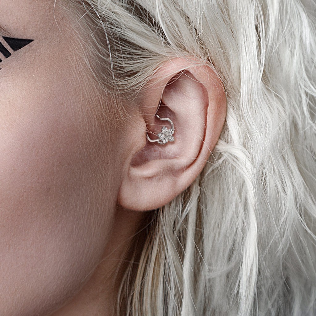 Serca i kwiaty - nie może być bardziej kobieco i uroczo! Ten kolczyk ma oba elementy! Na zdjęciu powyżej prezentujemy model biżuterii z sercem i kwiatem wykonanym z sześciennych kamieni cyrkonowych po jednej stronie. Ponieważ kwiat znajduje się tylko po jednej stronie biżuterii, ważne jest, aby wybrać prawy kolczyk do prawego ucha. Aby to zrobić, wybierz odpowiednią stronę biżuterii np. prawą oraz upewnij się, że biżuteria znajduje się w prawym uchu.