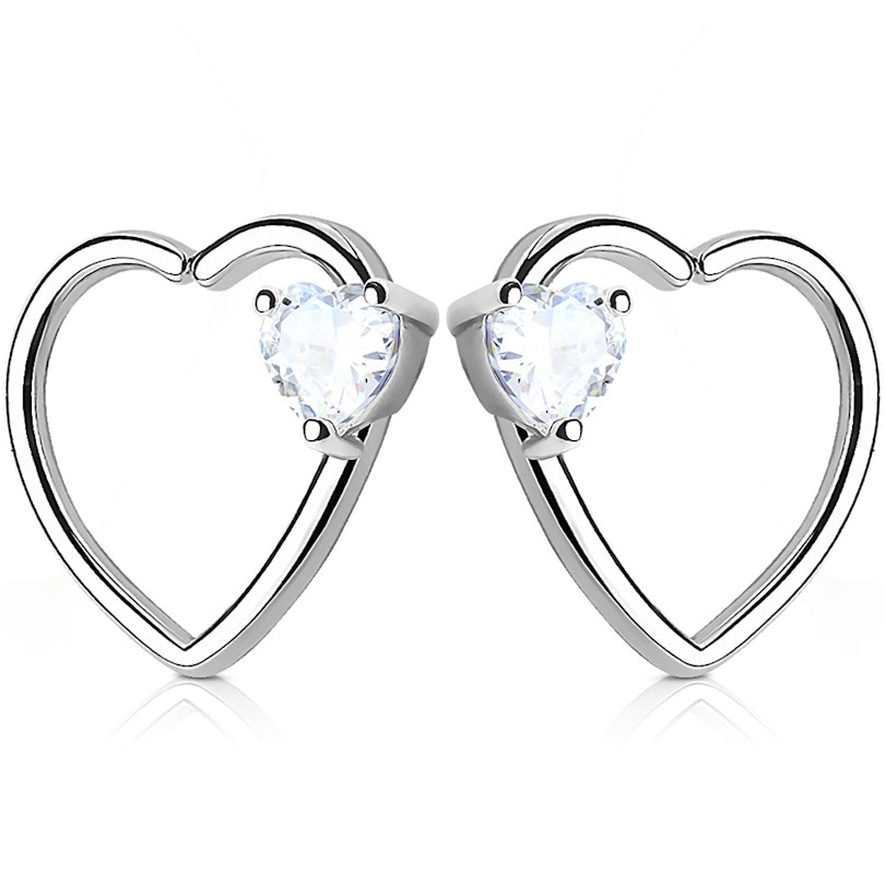 Kolczyk do ucha w kształcie serca z serduszkiem wysadzanym kamieniami