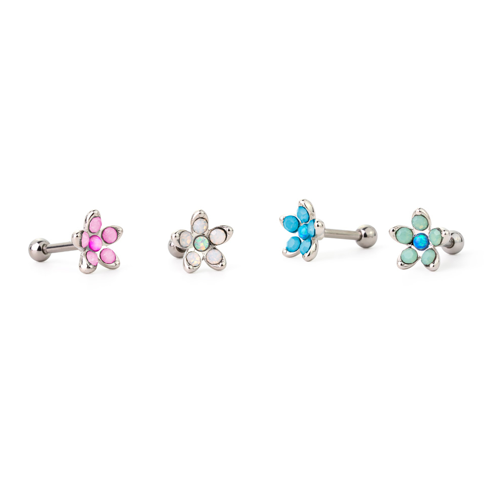 Sztanga jest wykonana ze stali chirurgicznej, a kwiat z mosiądzu, który został pokryty warstwą rodu i dzięki temu nadaje błyszczące wykończenie. Kwiat tworzy pięć kamieni opalitowych, a centralnym punktem jest opal.