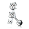 Ten kolczyk do ucha wykonany jest ze stali chirurgicznej a wzór przedstawia trzy kamienie w jednym rzędzie, które stopniowo są coraz mniejsze i mogłyby przypominać spadającą gwiazdę.