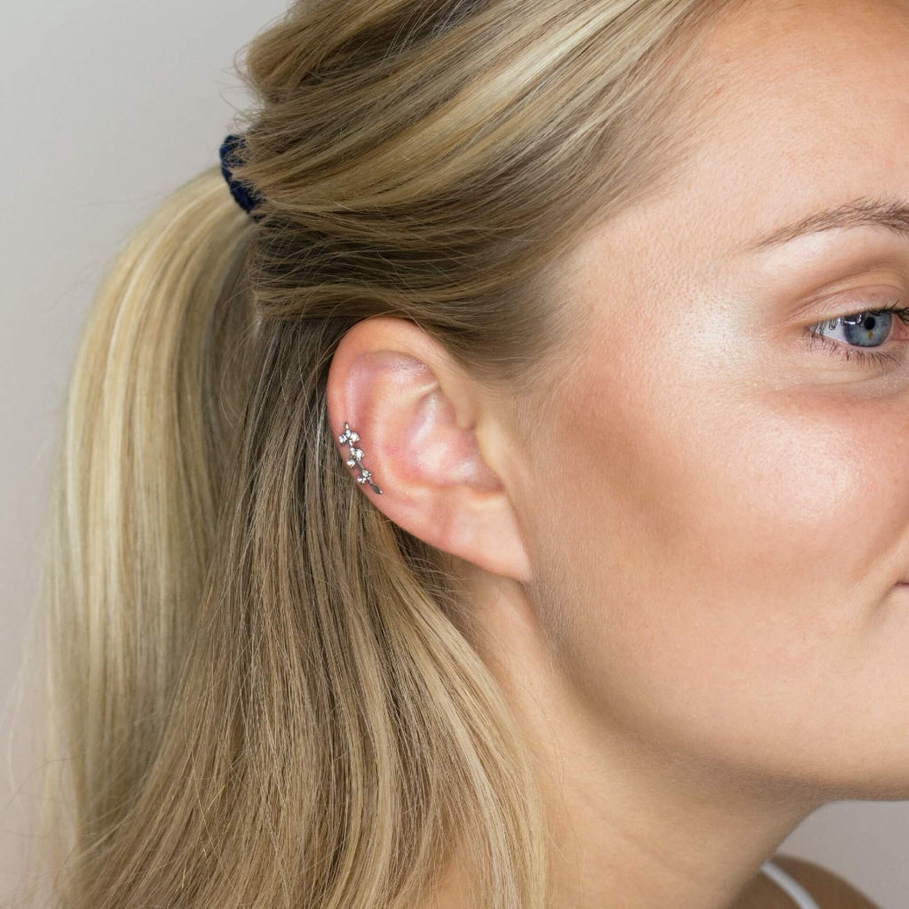 Jest to bardzo elegancki i delikatny design, który świetnie wygląda w piercingu helix lub tragus.