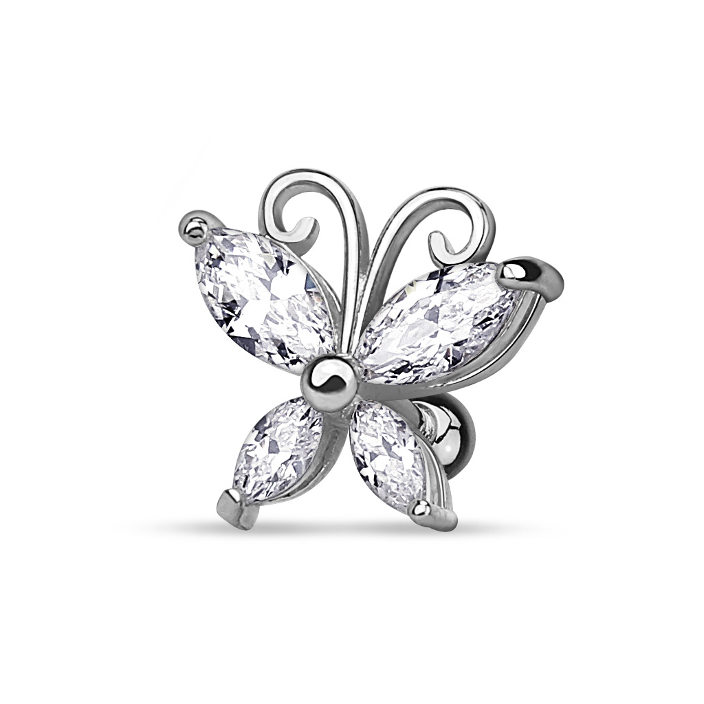 Trudno nie zakochać się w tym pięknym motylu, biorąc pod uwagę jak starannie został zaprojektowany. Ma on piękne skrzydła, które tworzą podłużne cyrkonie. Przednia para jest większa, tak samo jak w przypadku prawdziwych motyli. Biżuteria ta na pewno będzie nam przypominać lato i słoneczne dni. Z przodu posiada dodatkowe zdobienia w formie małych antenek, które są zawinięte na końcach. Każdy z kamieni w skrzydłach jest zabezpieczony małymi haczykami, które są częścią całej konstrukcji kolczyka.
