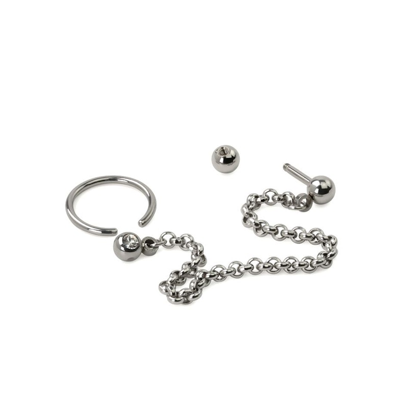 Kółko CBR i sztanga do tragusa i helixa połączone łańcuszkiem