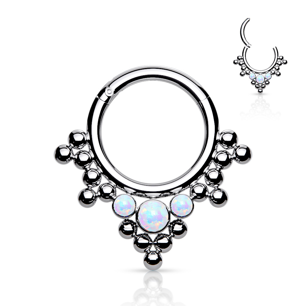 Kółko z tytanu z zawiasem zdobione kompozycją koralików i opali