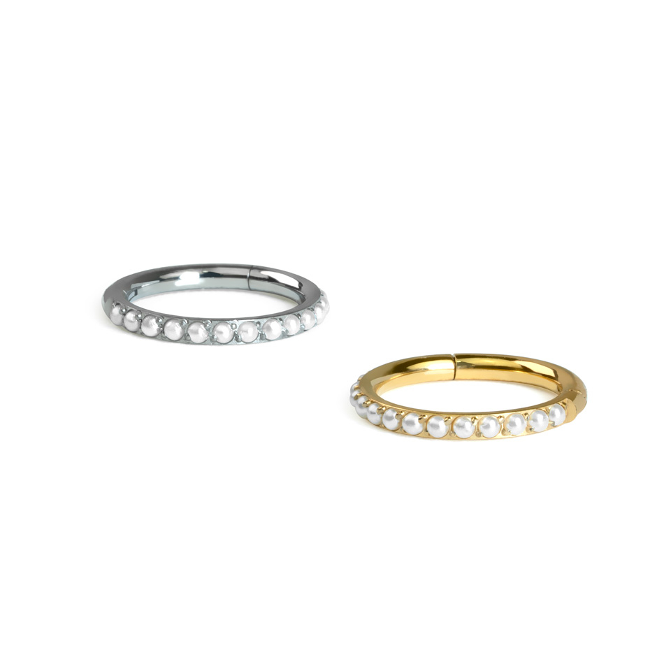 Kółko z tytanu zamykane zawiasem zdobione perłami pave
