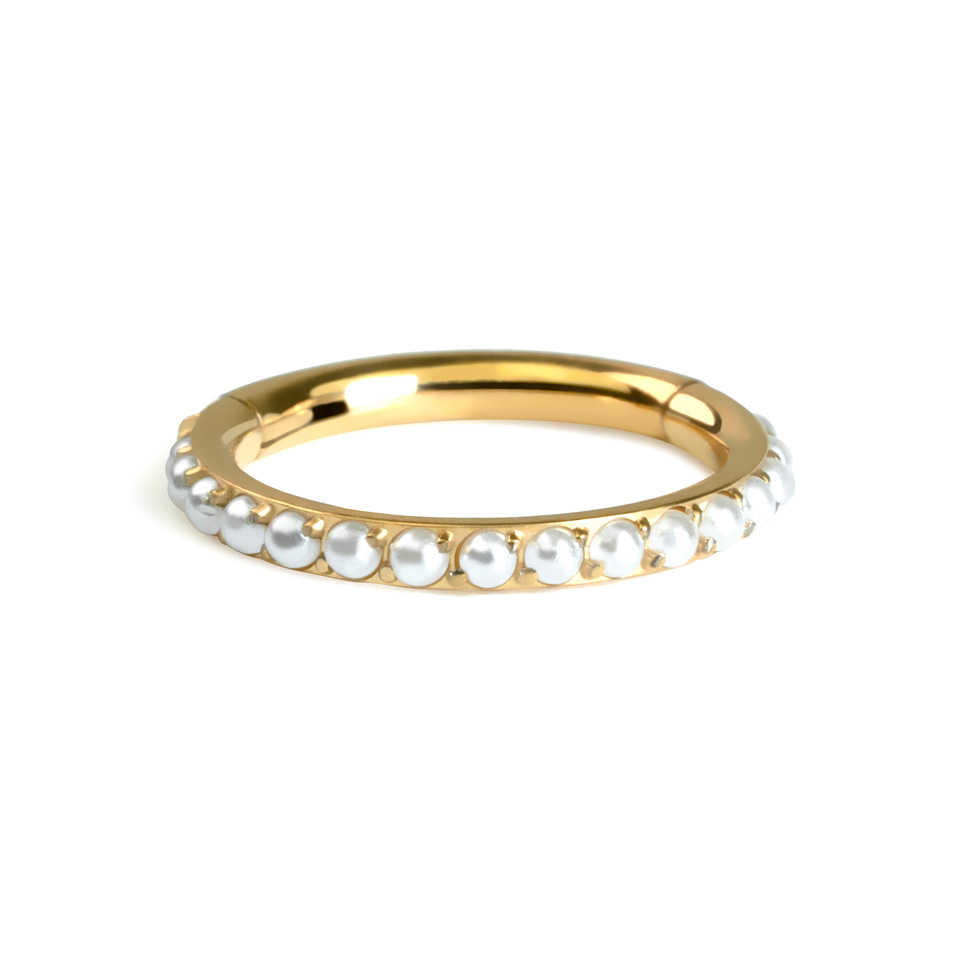 Nazwa: Kółko z tytanu zamykane zawiasem zdobione perłami pave