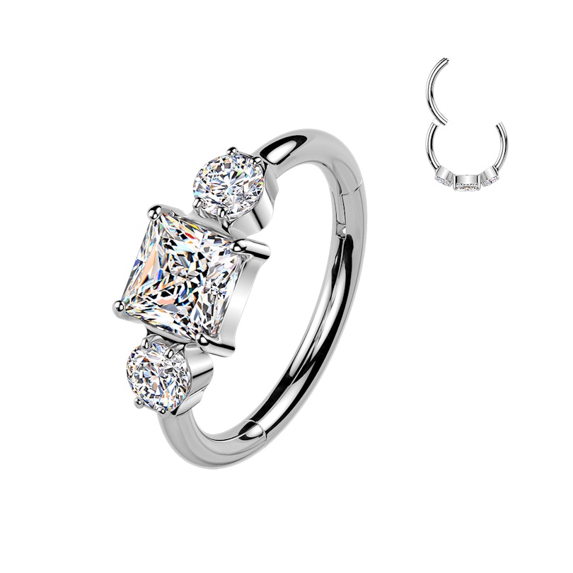 Trzy kamienie, duży efekt. Bodymod Premium prezentuje kółko na zawiasie z trzema cyrkoniami, które nadadzą Twojemu piercingowi idealny blask. Wystarczająco subtelne, aby nosić je na co dzień, tym samym wystarczająco błyszczące, aby przyciągnąć spojrzenia.