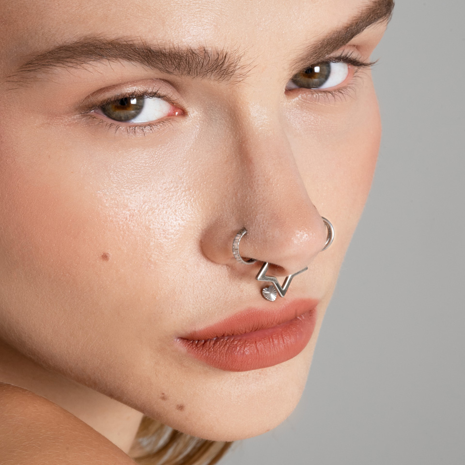 To kółko zdobione jest kamieniami o szlifie baguette, które leżą poziomo, zapewniając oszałamiający efekt. Kamienie nadają biżuterii szerokość 2.4 mm. Kółko otwiera i zamyka się za pomocą małego zawiasu, co oznacza, że łatwo je zakładać i zamykać. Sprawdzi się, jeśli lubisz często zmieniać kolczyki. Element ten będzie świetnie wyglądał w piercingach ucha, takich jak płatek ucha, tragus, helix lub rook.