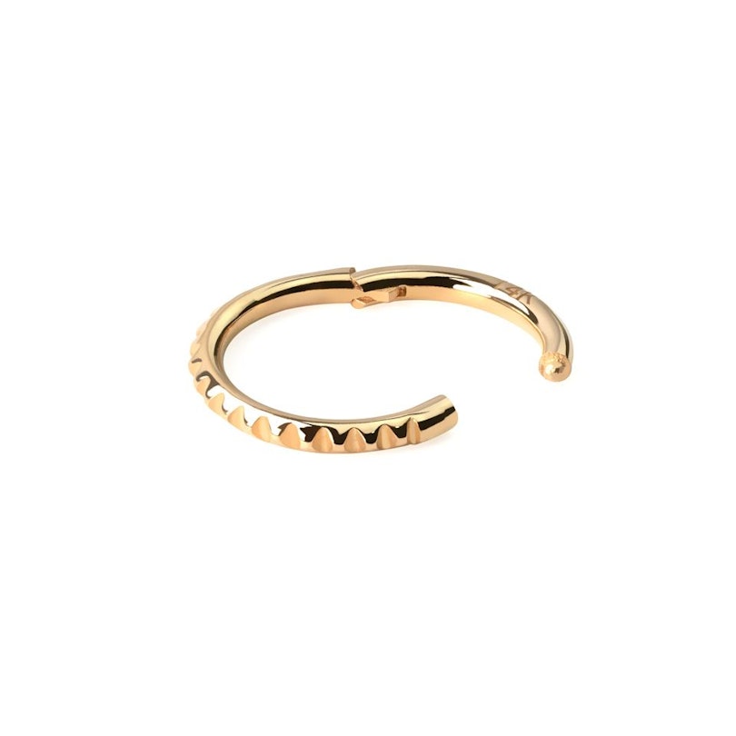 Biżuteria do piercingu wykonana z 14k złota zawsze będzie się wyróżniać ze względu na luksus i imponującą jakość. Kiedy materiał jest połączony z doskonałym projektem, oznacza to że uniwersalny kolczyk będzie służył przez wiele lat. Kółka sprawdzają się w wielu przekłuciach, a jedyną rzeczą o jaką należy się martwić to rozmiar piercingu.