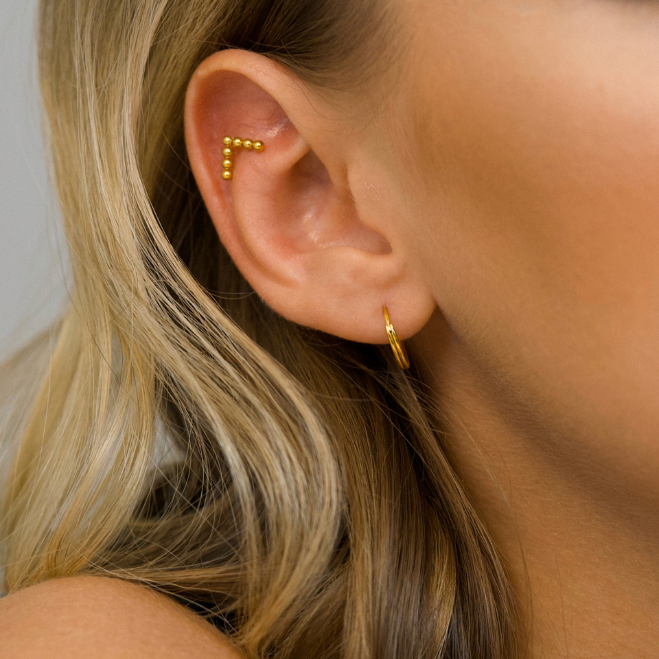 Dostępne w trzech różnych rozmiarach - 6 mm, 8 mm i 10 mm, dlaczego zatem nie kupić różnych rozmiarów i stworzyć kompozycji w uchu? Różne rozmiary oznaczają także, że możesz je użyć w piercingu nosa.