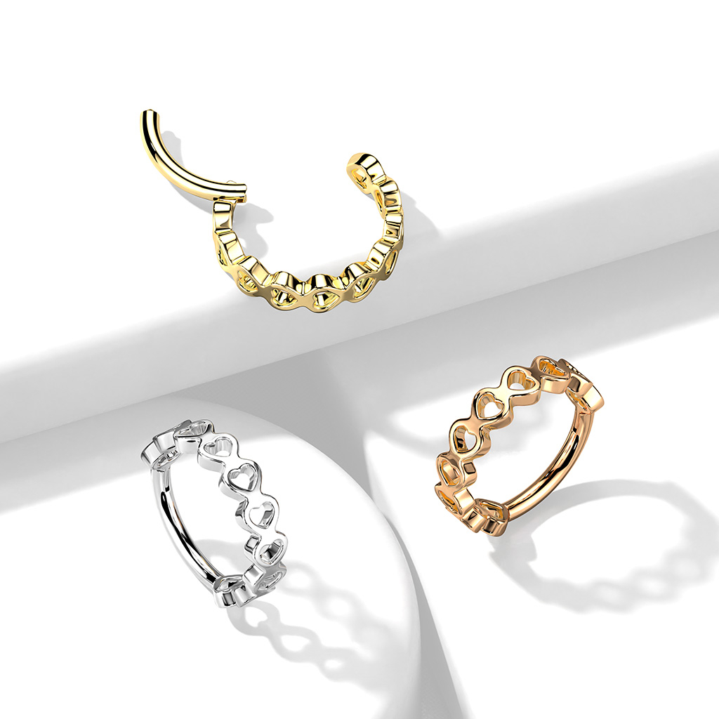 Kółko zamykane zawiasem zdobione po bokach sercami