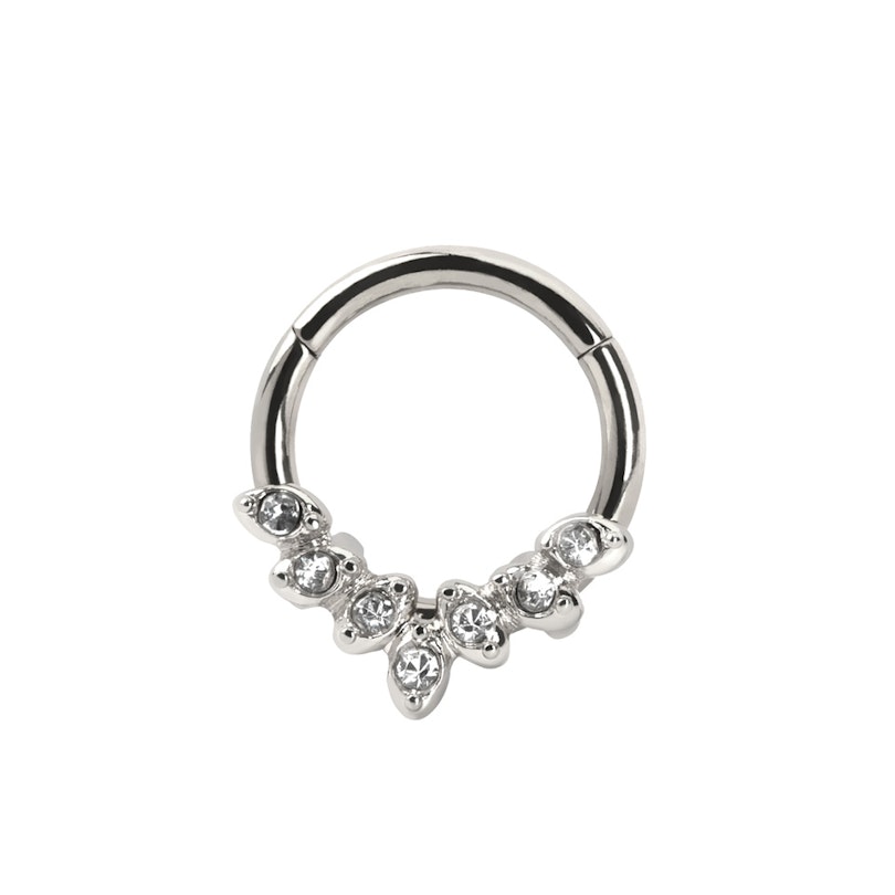 Kółko zamykane zawiasem ze stali zdobione 7 listkami - cyrkoniami