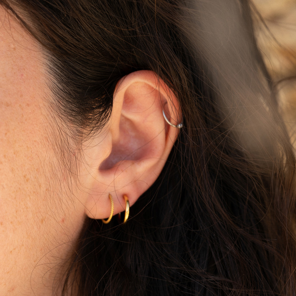 Większość osób używa zwykłych kółek, które czasami ciężko umieścić w przekłuciu, a dodatkowo wiemy jak łatwo można zgubić ich kulki zamykające. Znaleźliśmy jednak na to sposób i rozwiązanie, którym jest ten prezentowany na zdjęciu kolczyk.