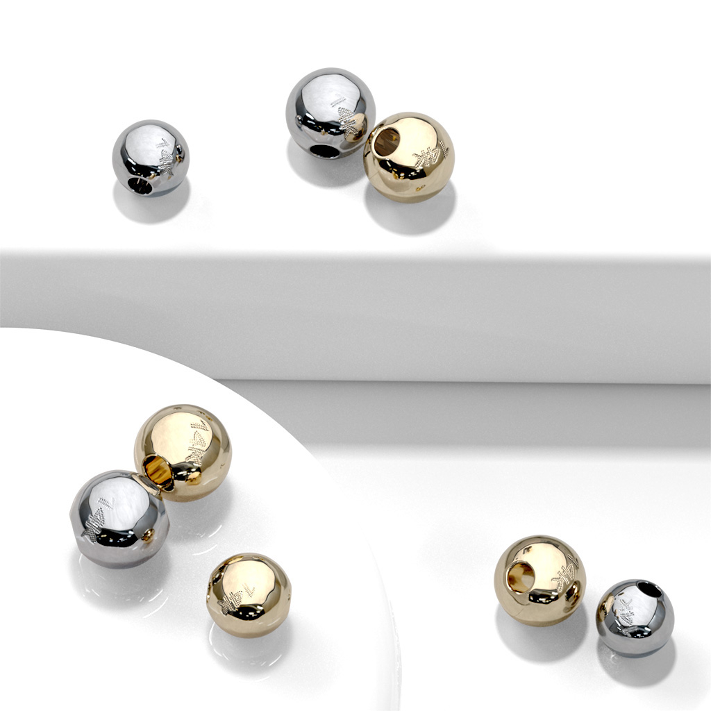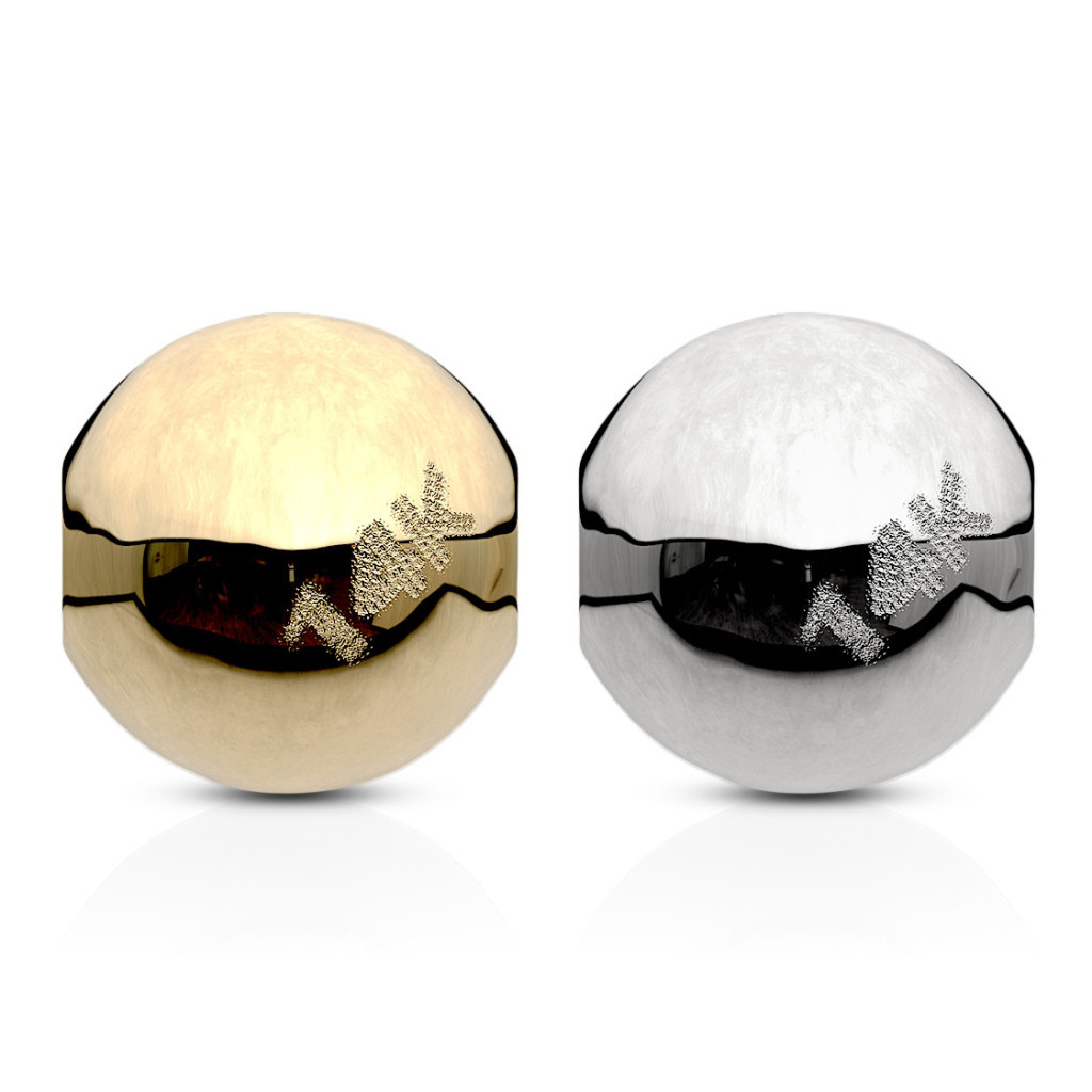 Jak wyżej wspomniano, kulka jest wykonana z 14-karatowego złota i można ją zakupić w kilku kolorach - np. białe złoto. Kula dostępna jest również w kilku rozmiarach, zarówno grubość drutu, jak i wielkości kulki. Możesz wybrać pomiędzy grubością drutu 1,2 mm. lub 1,6 mm., w zależności od grubości gwintu kółka. Kula dostępna jest w wielkościach 3 mm. i 4 mm., więc istnieje zarówno możliwość posiadania małej i dyskretnej kulki, jak i nieco większej, bardziej chwytliwej.