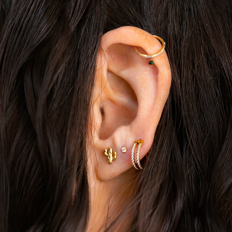 Dostępny w złotym lub srebrnym kolorze, idealnie dopasowuje się do piercingu conch, helixa, płatku ucha lub tragusa. Do noszenia na co dzień? Oczywiście. Podkreśla piercing? Jak najbardziej.