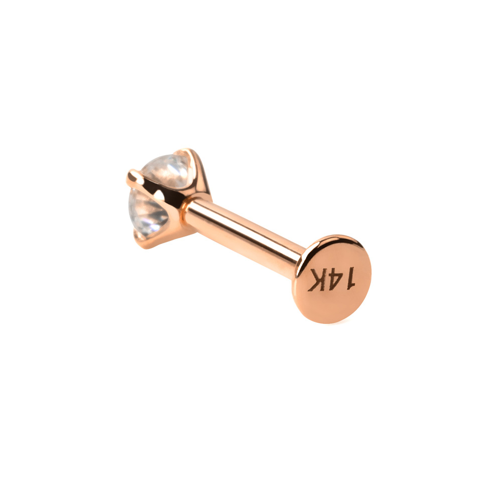 Nazwa: Labret z 14 karatowego złota z kamieniem i wewnętrznym gwintem