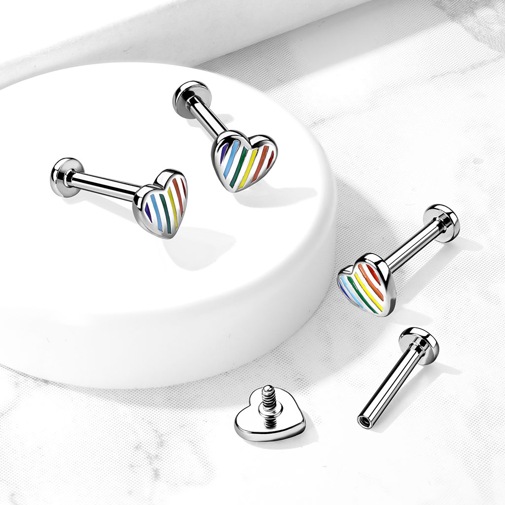 Labret z gwintem wewnętrznym i tęczowym sercem