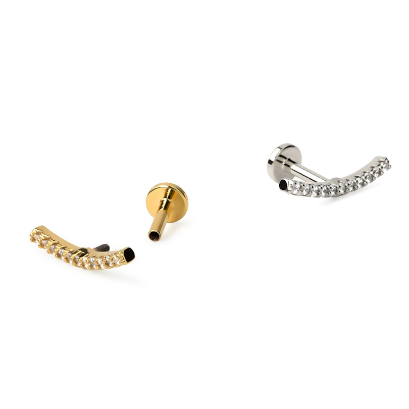 Labret z gwintem wewnętrznym w kształcie łuku zdobiony kamieniami