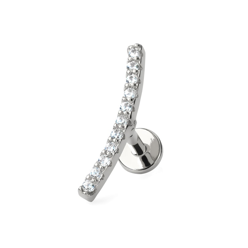 Ten labret natychmiast rzuci się w oczy, dzięki swojej formie, którą tworzy długi łuk wysadzany kamieniami.