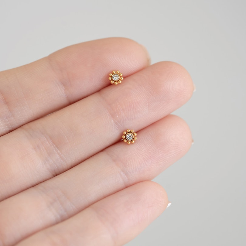 Ten piękny labret noszę jako uzupełnienie mojego klikera kulkowego. Uważam, że motyw wygląda jak słońce. Małe kulki otaczają kryształ z cyrkonii jak promienie. Przepiękne. Ponieważ noszę biżuterię srebrną i złotą, sprawiłem sobie zarówno wersję w złotym kolorze, jak i srebrną. Jednak mam jeszcze jedną prośbę do zespołu Bodymod: te skarby z tytanu! Ale te ze stali chirurgicznej również są dobrze tolerowane. W tym duchu: Miej słońce w sercu i nabądź te czarujące kawałki!