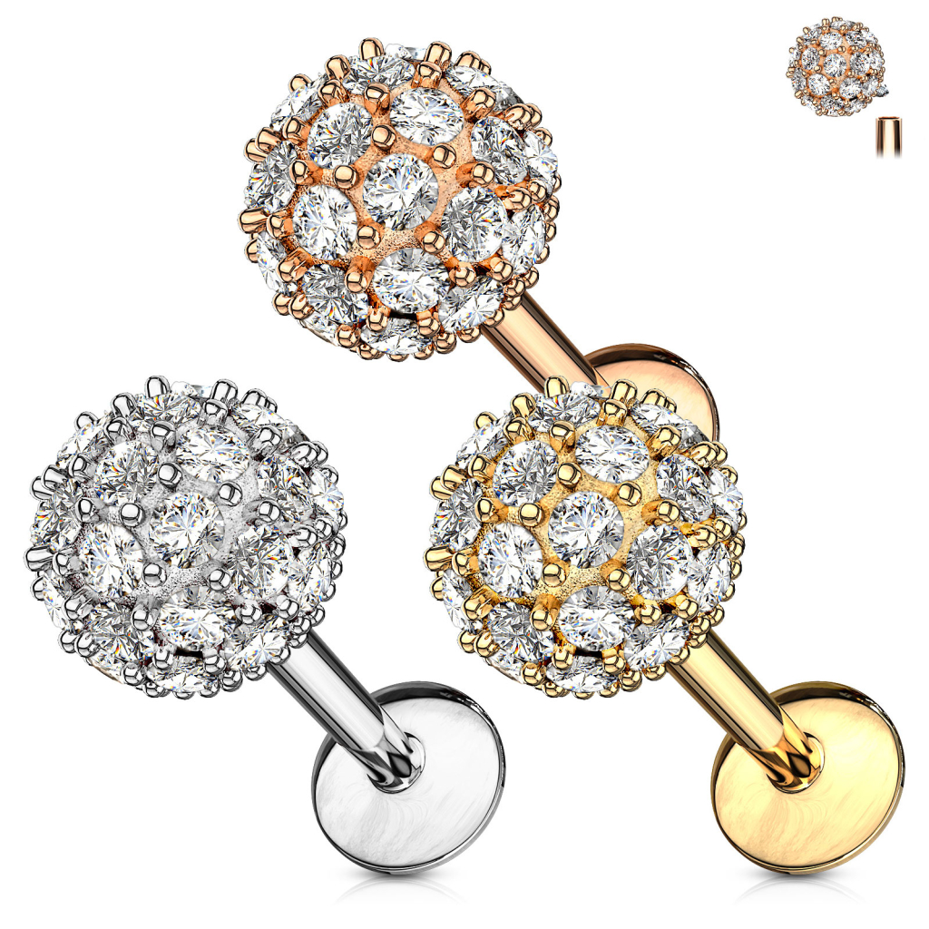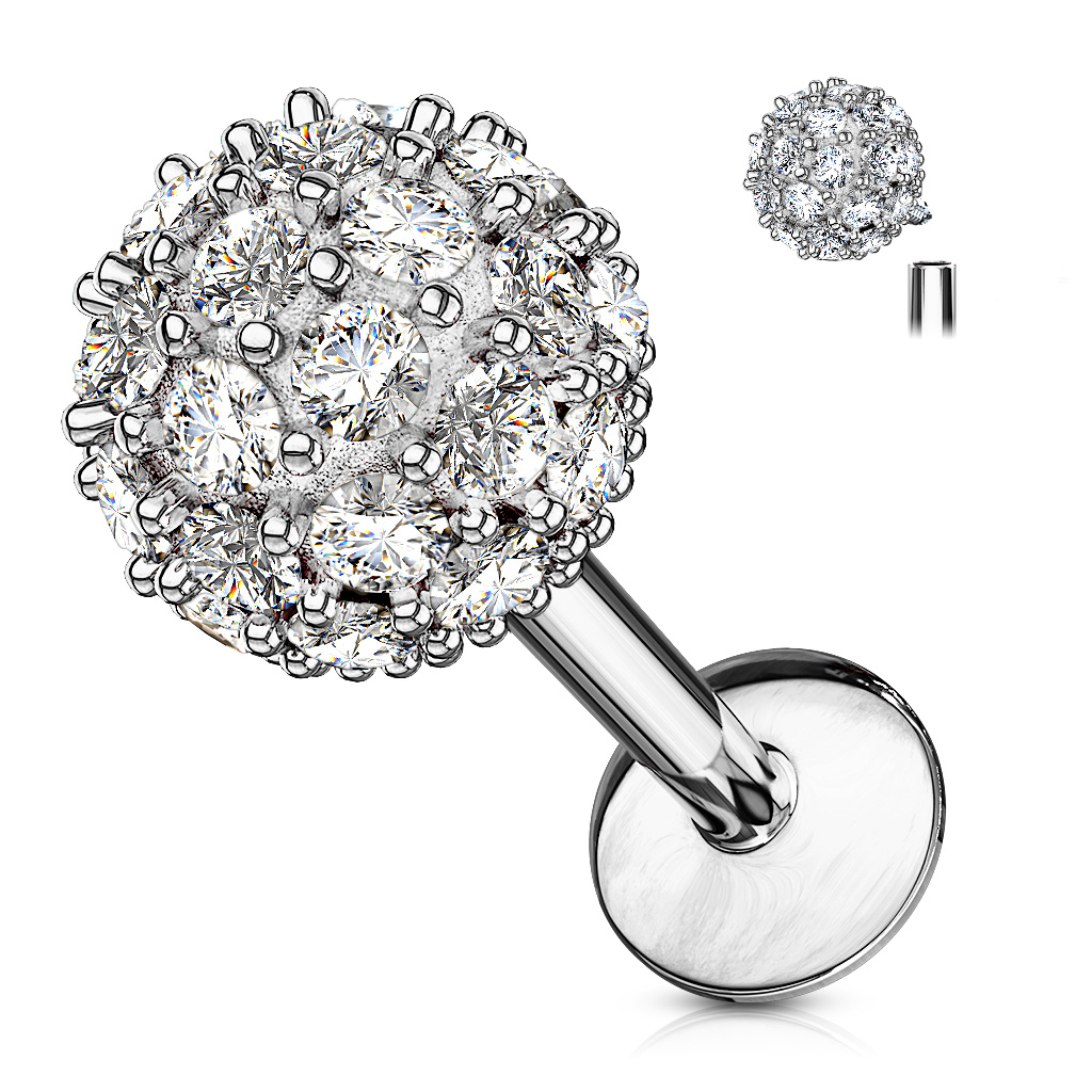 Labret z kulą wysadzaną kamieniami i gwintem wewnętrznym