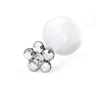 Uroczy labret z kwiatkiem wypełniony cyrkoniami. Wykonany jest z bezpiecznego materiału PTFE. Ten typ kolczyków może być noszony w różnych częściach ciała a dodatkowo jego wzór odbiega od tych klasycznych zakończonych kulkami czy kolcami. Łatwo i wygodnie nosi się go w piercingu ust lub uszu, bo na dole zamiast kulki ma płaski dysk. Szerokość pręcika to 1,2mm natomiast długość to 8mm.