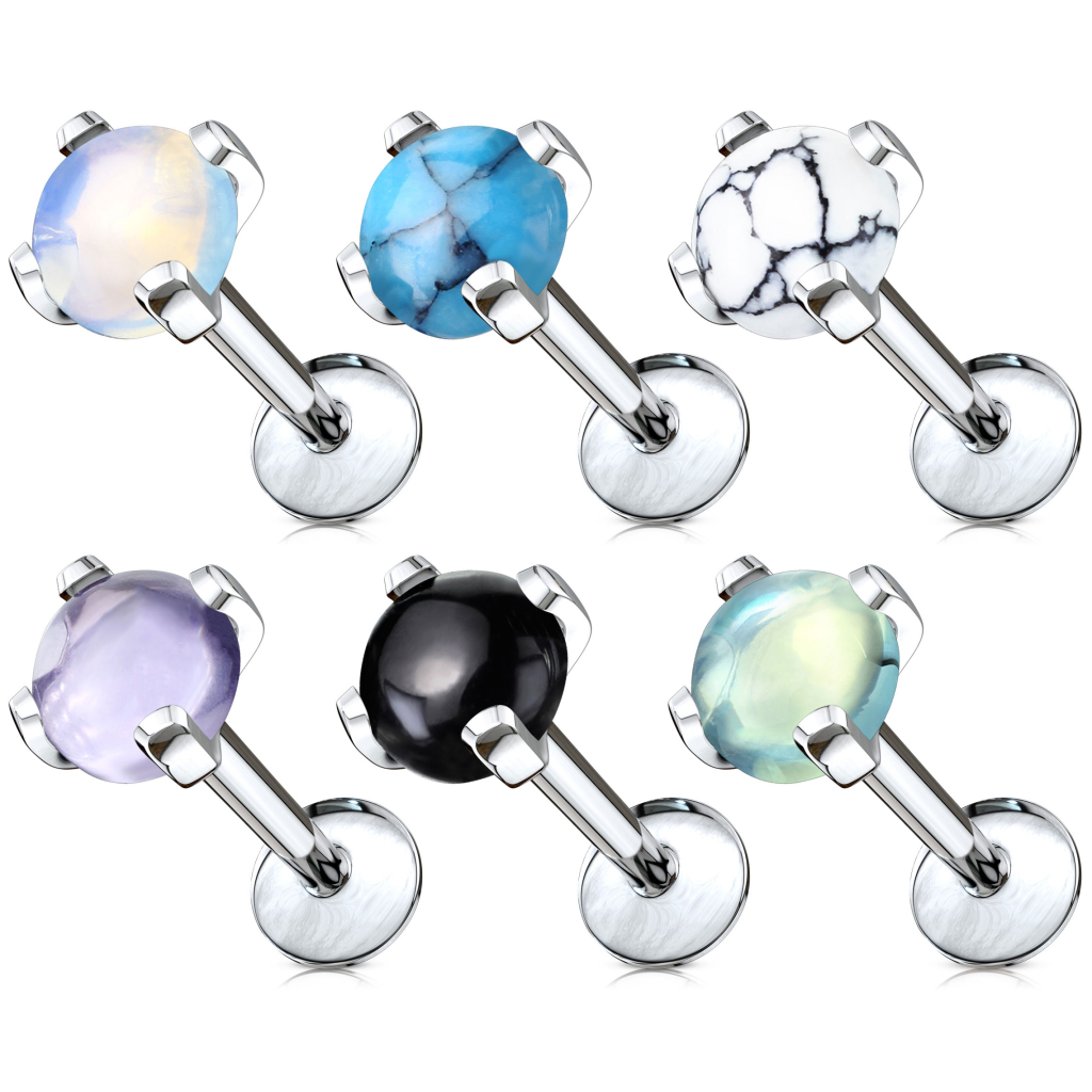 Labret z różnymi rodzajami kamieni szlachetnych