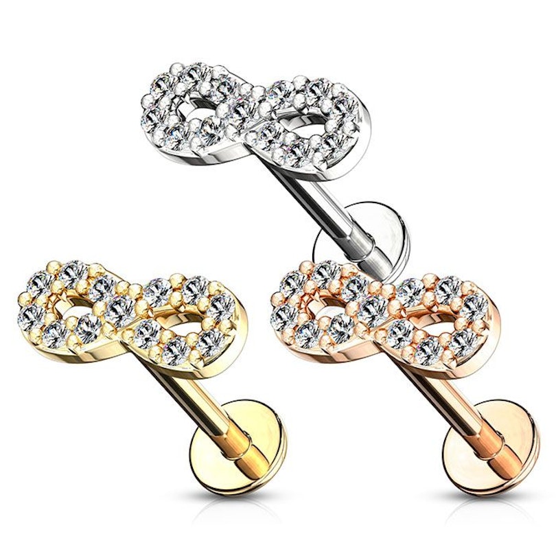 Labret z symbolem nieskończoności i wewnętrznym gwintem