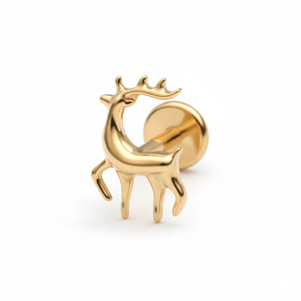 Tytanowy labret z reniferem wniesie odrobinę świątecznej atmosfery do Twojej kompozycji kolczyków w uchu. Ma kształt biegnącego renifera, przypomina o przytulnych światełkach, spokojnych nocach i tej lekkiej radości zbliżającego się końca roku, która nigdy nie wychodzi z mody.
