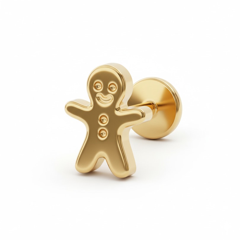 Tytanowy labret z piernikowym ludzikiem to zabawny ukłon w stronę nostalgii. Uformowany jak ciasteczko, które każdy zna, doda Twojej kompozycji kolczyków do ucha trochę luzu i radości, nie traktując siebie zbyt poważnie.