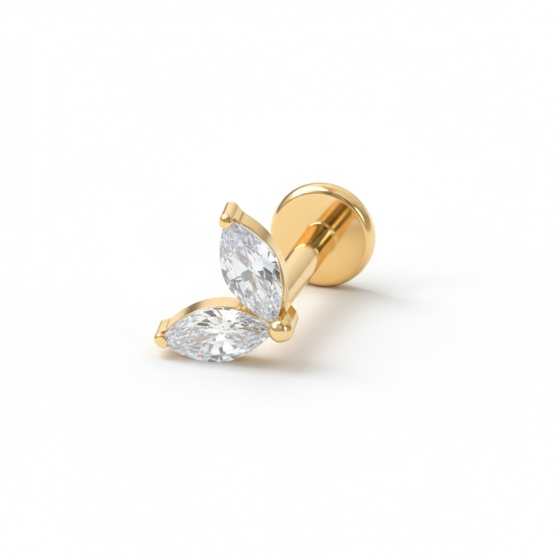 Labret z tytanu z podwójnymi kamieniami