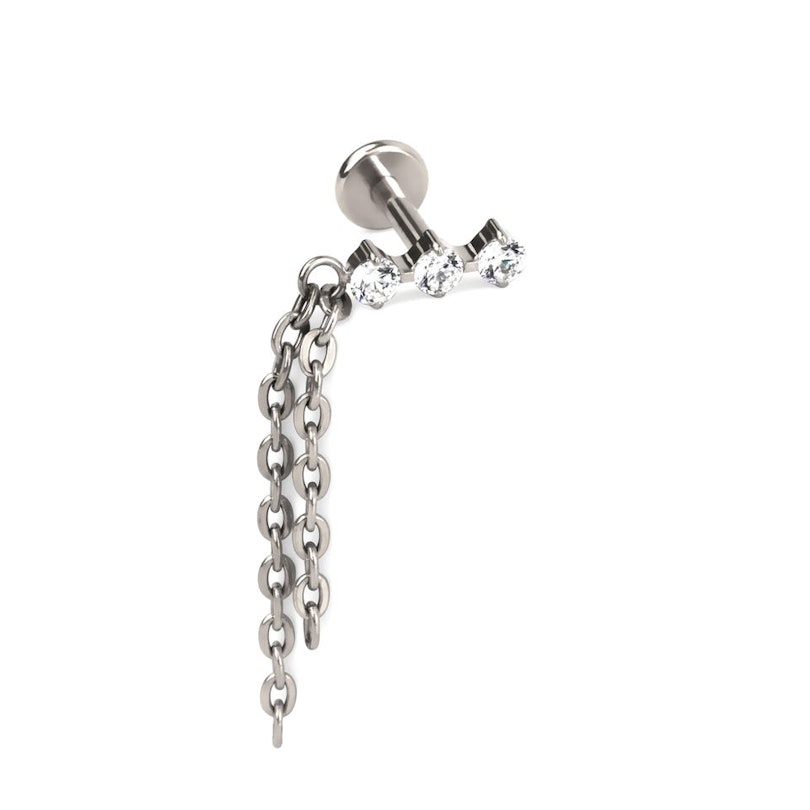 Nazwa: Labret z tytanu z trio kamieniami i zawieszką z podwójnego łańcuszka