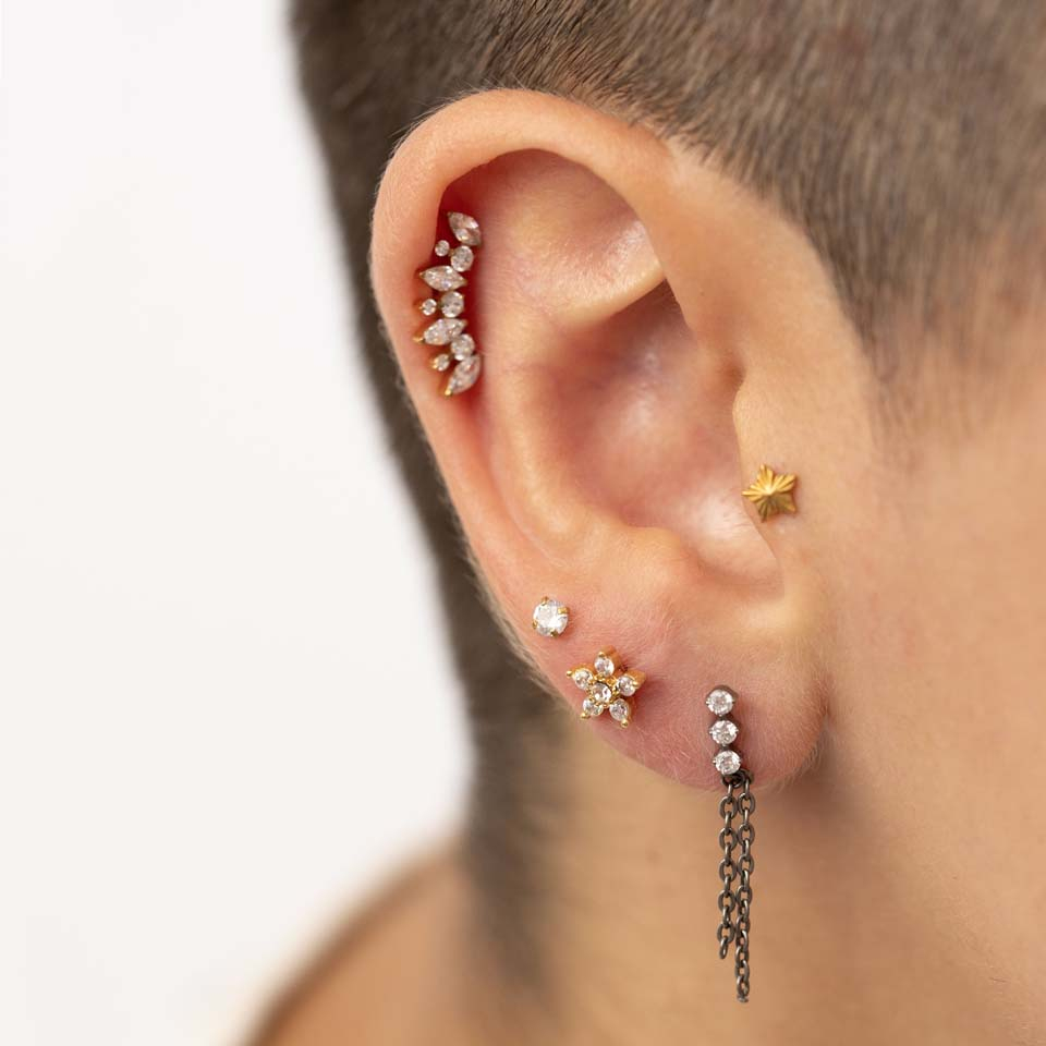 Dłuższy łańcuszek mierzy 19mm. Kolczyk może być noszony poziomo w płatku ucha, pionowo lub pod kątem w innych kolczykach - stylizuj go według własnego uznania.