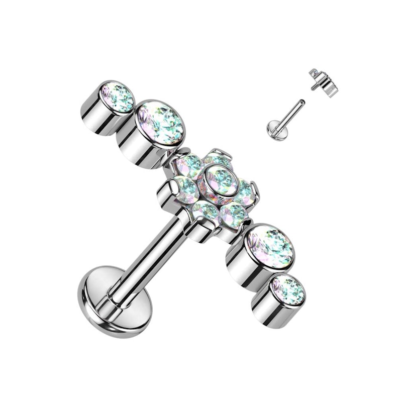 Nazwa: Labret z tytanu zdobiony kwiatem i kamieniami