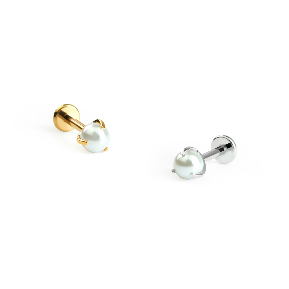 Wyobraź sobie być morską syrenką z tym chic perłowym labretem. Wykonany z tytanu, jest wytrzymały i hipoalergiczny. Syntetyczna perła o rozmiarze 4 mm, utrzymywana jest na miejscu trzema ząbkami, dodaje ona biżuterii idealnego morskiego blasku.
