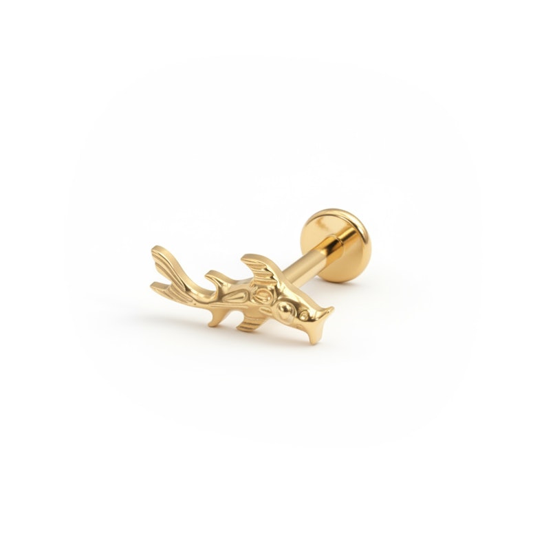 Labret z motywem rybki koi wykonany z tytanu to coś więcej niż wygląd, ponieważ ma on także symboliczne znaczenie; Inspirowany karpiami koi, symbolem siły i przemiany, ten labret będzie Tobie towarzyszył w momentach zmian życiowych. Oferowany w złotej lub srebrnej wersji, jest dopracowany w każdym szczególe.