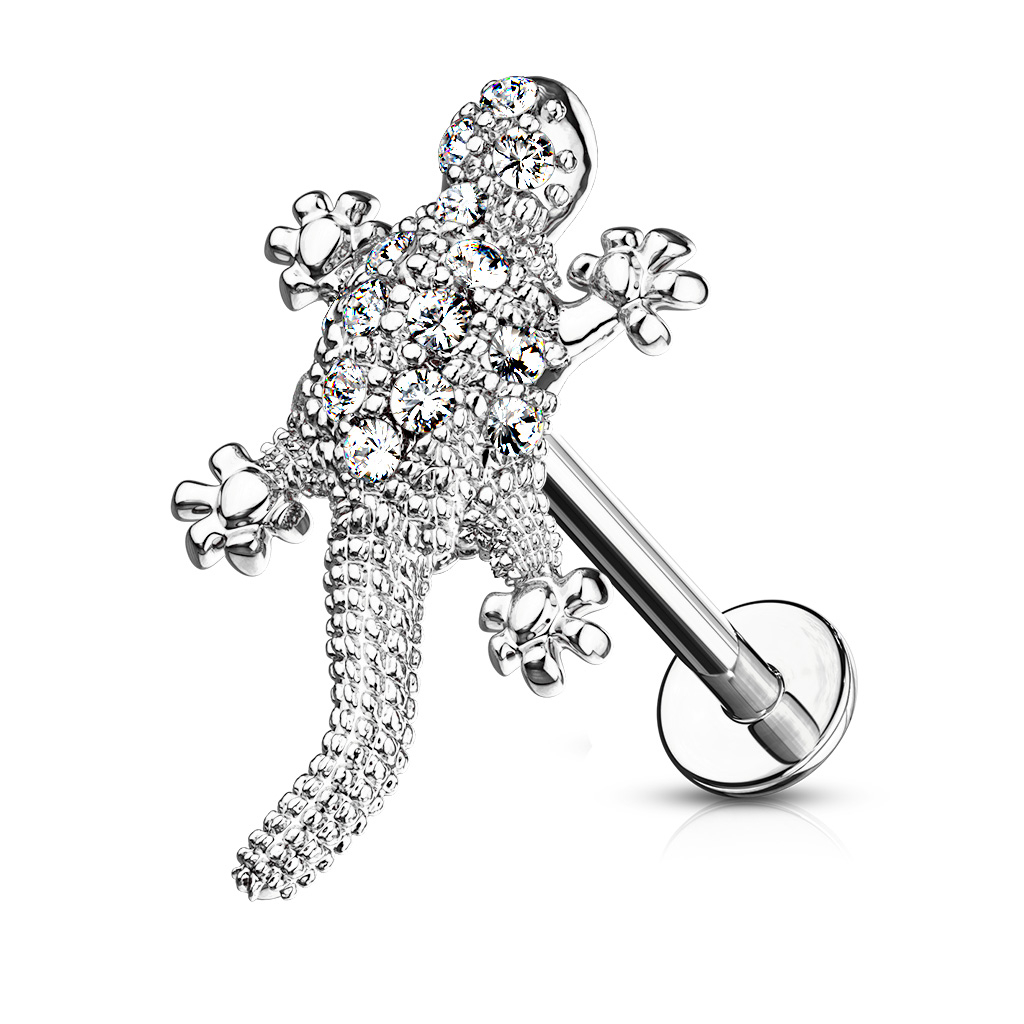 Labret z wewnętrznym gwintem i jaszczurką zdobioną kamieniami