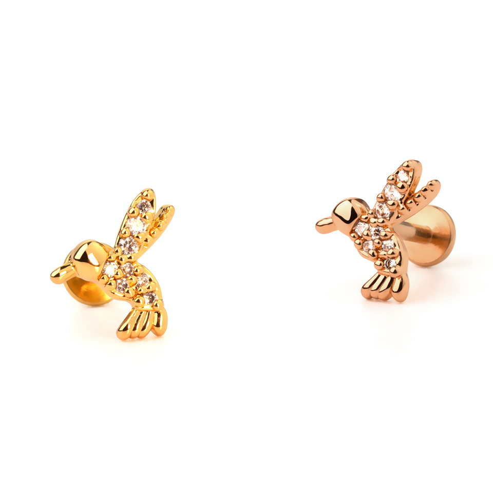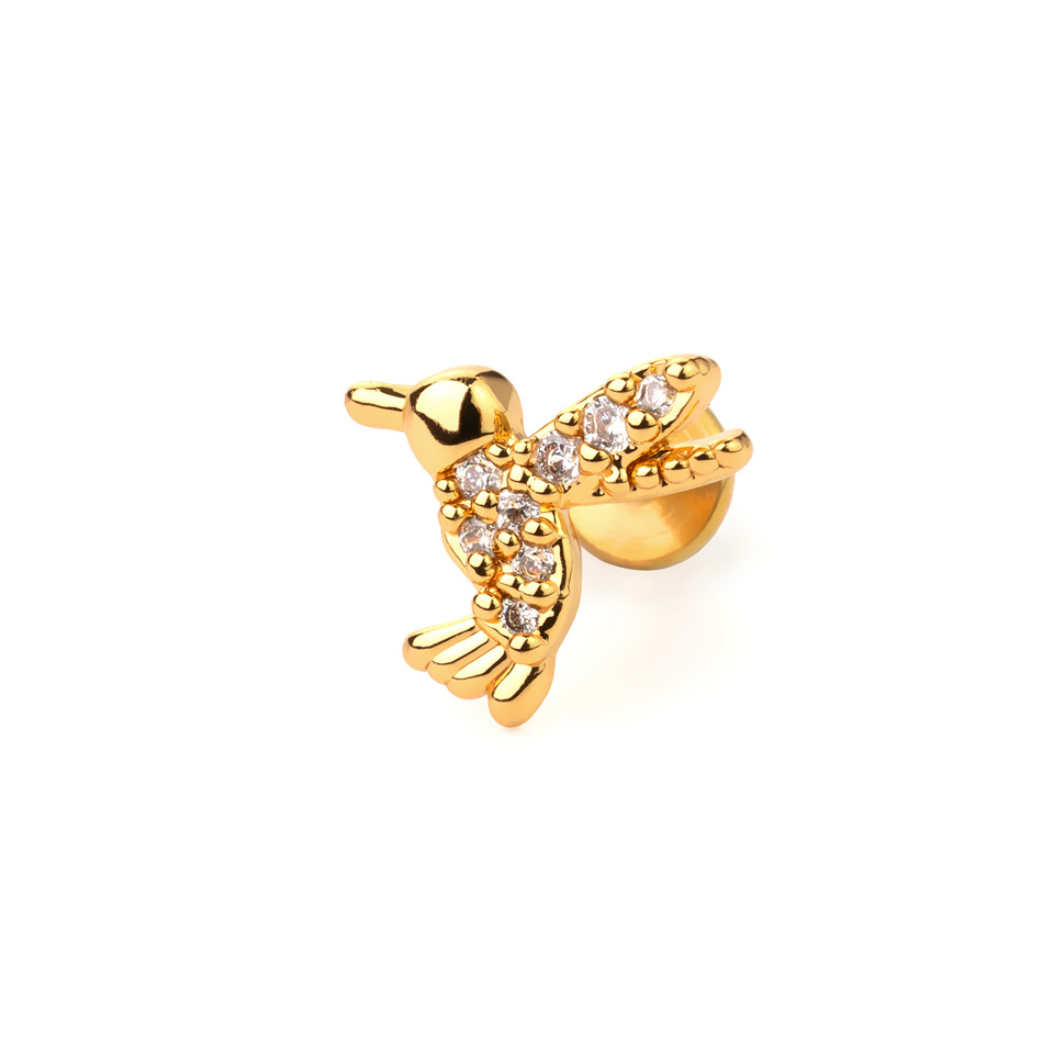 Spośród wszystkich pięknych zwierząt na ziemi, koliber najbardziej inspiruje. Jest zwinny, inteligetny, zadziorny i znany z unoszenia się w powietrzu. Projekt tego labretu ożywi Twój wygląd i będzie też doskonałym prezentem dla ukochanej osoby. Upierzenie ptaka pokryte jest błyszczącymi kamieniami, aby jeszcze bardziej przyciągnąć uwagę.