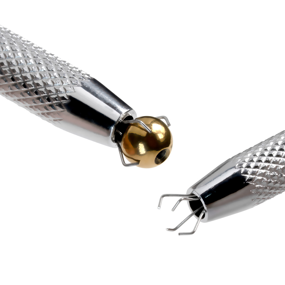 Jest wyposażone w cztery specjalne "ramiona", które są wypychane na zewnątrz za pomocą specjalnego przycisku - trochę tak jak w długopisie, tylko że zamiast końcówki wkładu, dostajemy cztery druciki. One są odpowiedzialne za chwytanie od 3 do 6 mm kuleczek . Trzeba jedynie pamiętać, by dziurka w kulce była zwrócona na zewnątrz, inaczej jej wkręcenie będzie niemożliwe.