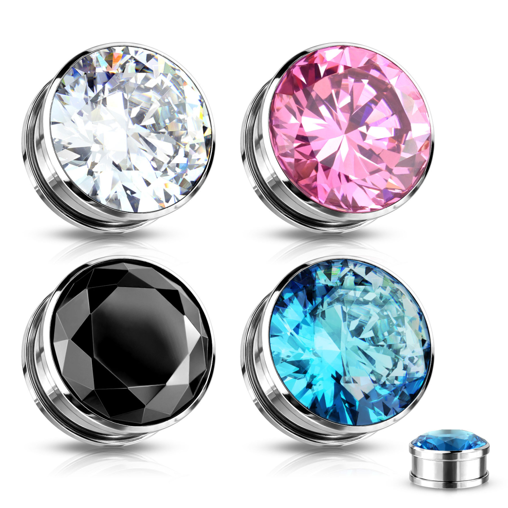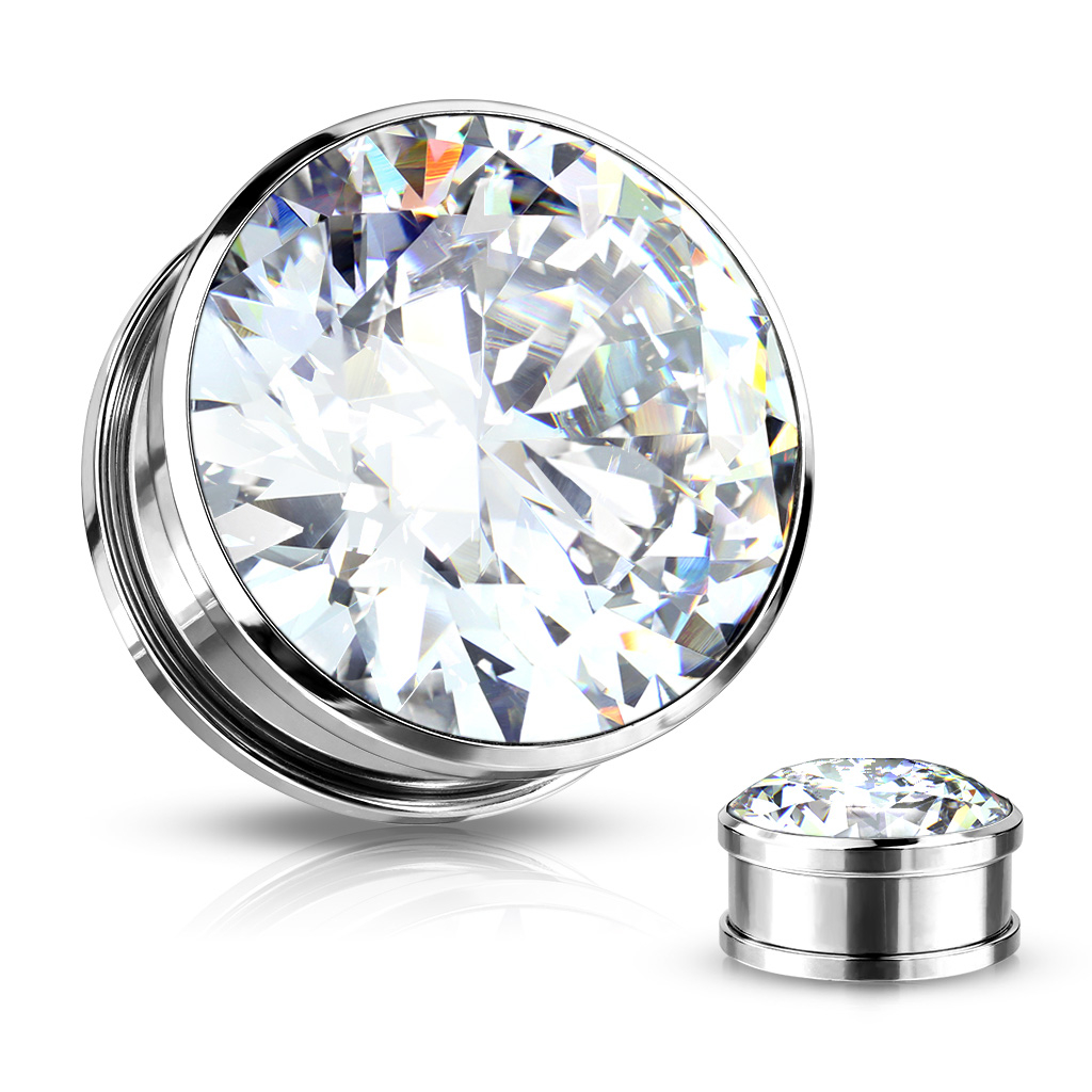 Plug można z tyłu odkręcić, zatem bardzo łatwo umieścić go w uchu. Z przodu widać duży kamień o diamentowym szlifie, dzięki któremu zauważysz go z daleka i od razu przyciągnie spojrzenia. Jak wcześniej wspomnieliśmy, plug jest wykonany ze stali chirurgicznej, co oznacza że możesz go użyć od razu po początkowym rozciąganiu.