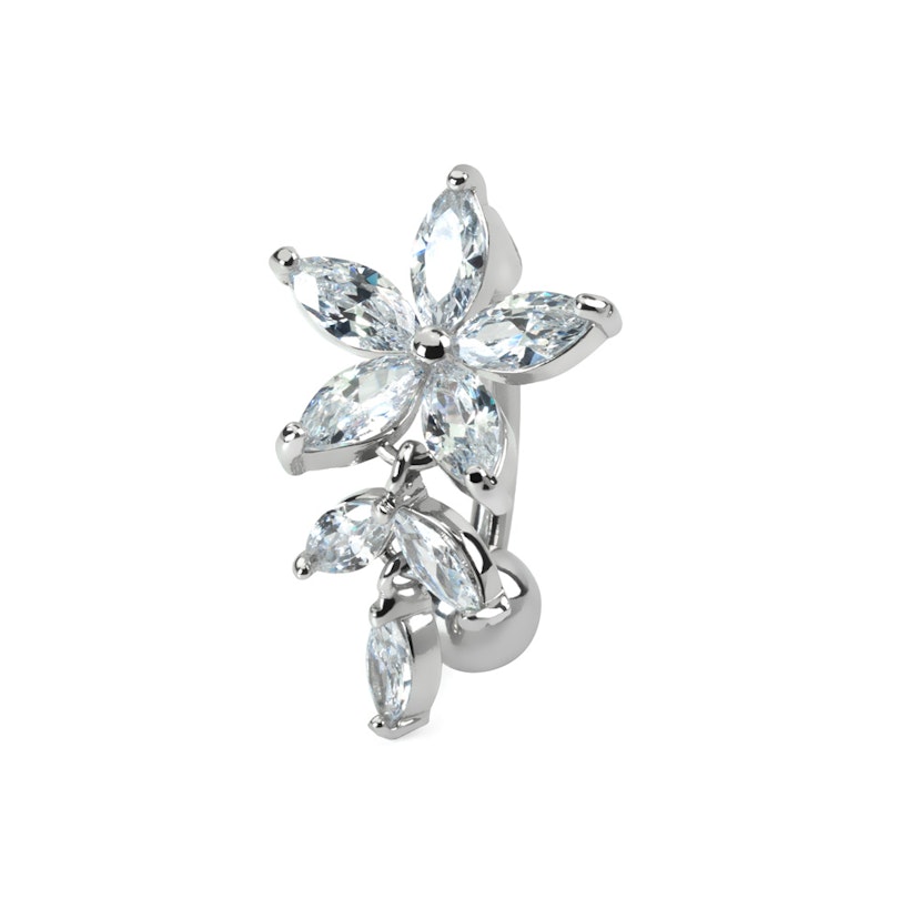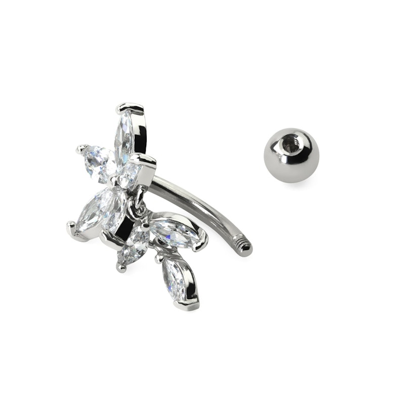 Nazwa: Odwrócony kolczyk do pępka z kwiatem z cyrkonii