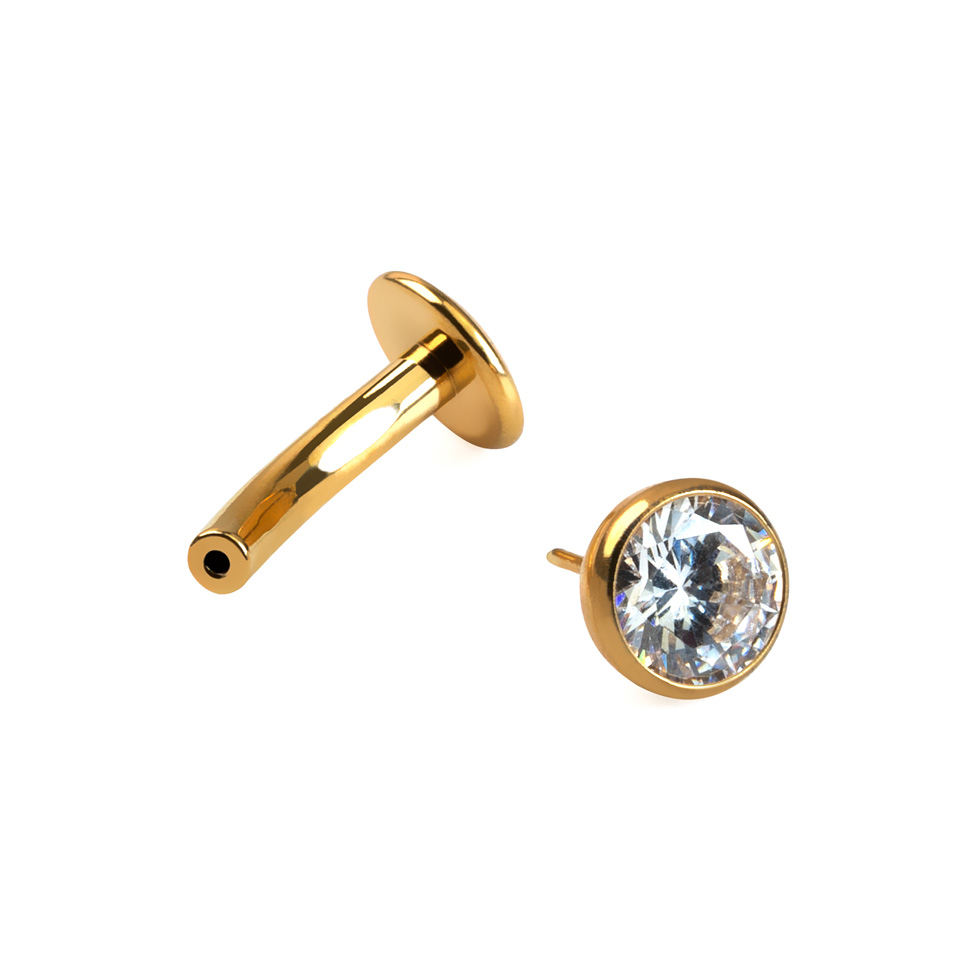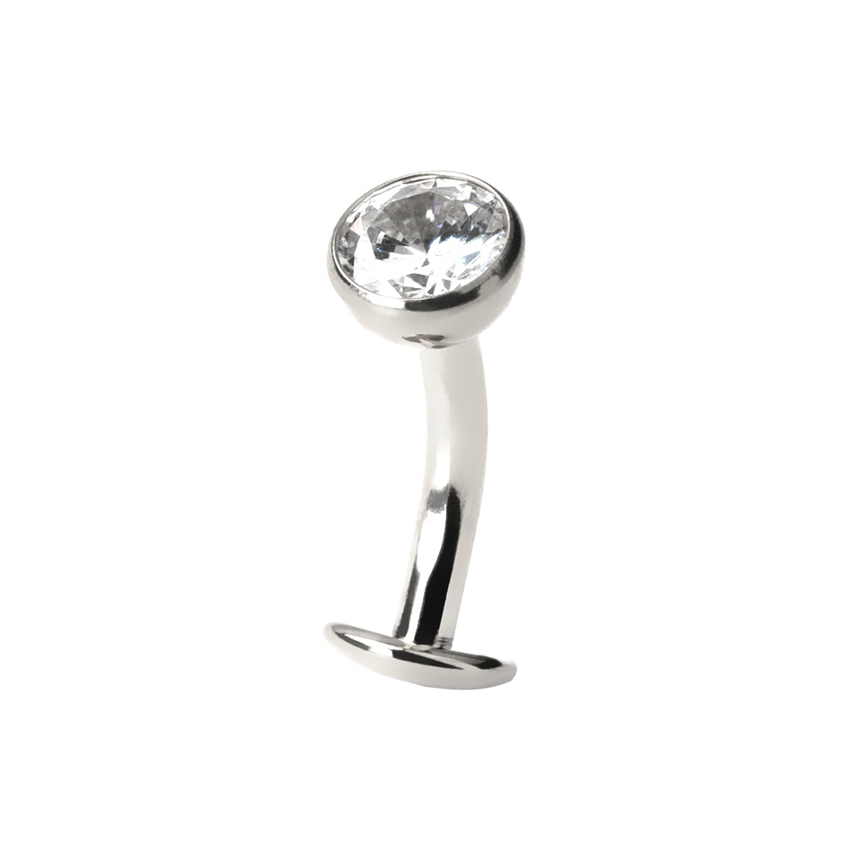 Ten unoszący się lub odwrócony kolczyk do pępka ma oprawioną cyrkonię w górnej kulce, która będzie znajdowała się nad pępkiem. Drugi koniec sztangi ma płaski dysk, który dyskretnie jest ułożony w pępku, co sprawia wrażenie, że lekko się unosi.